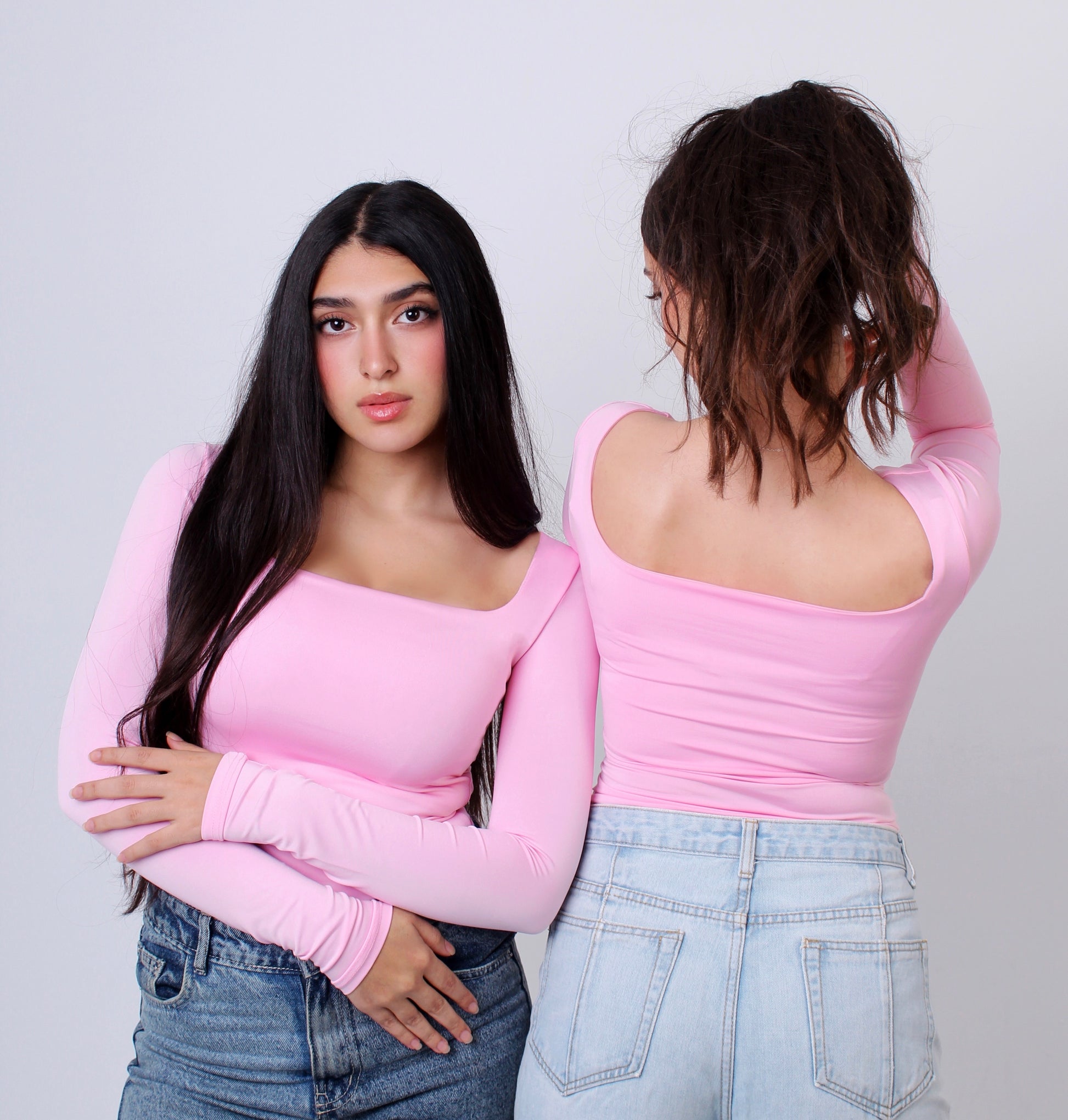 Our Curve Fit Top is like having two cute tops in one! CAUSE IT'S REVERSIBLE so you can style it on both sides as well it hugs your body just right ,so you can flip it for a whole new vibe – square or sassy, you choose!
