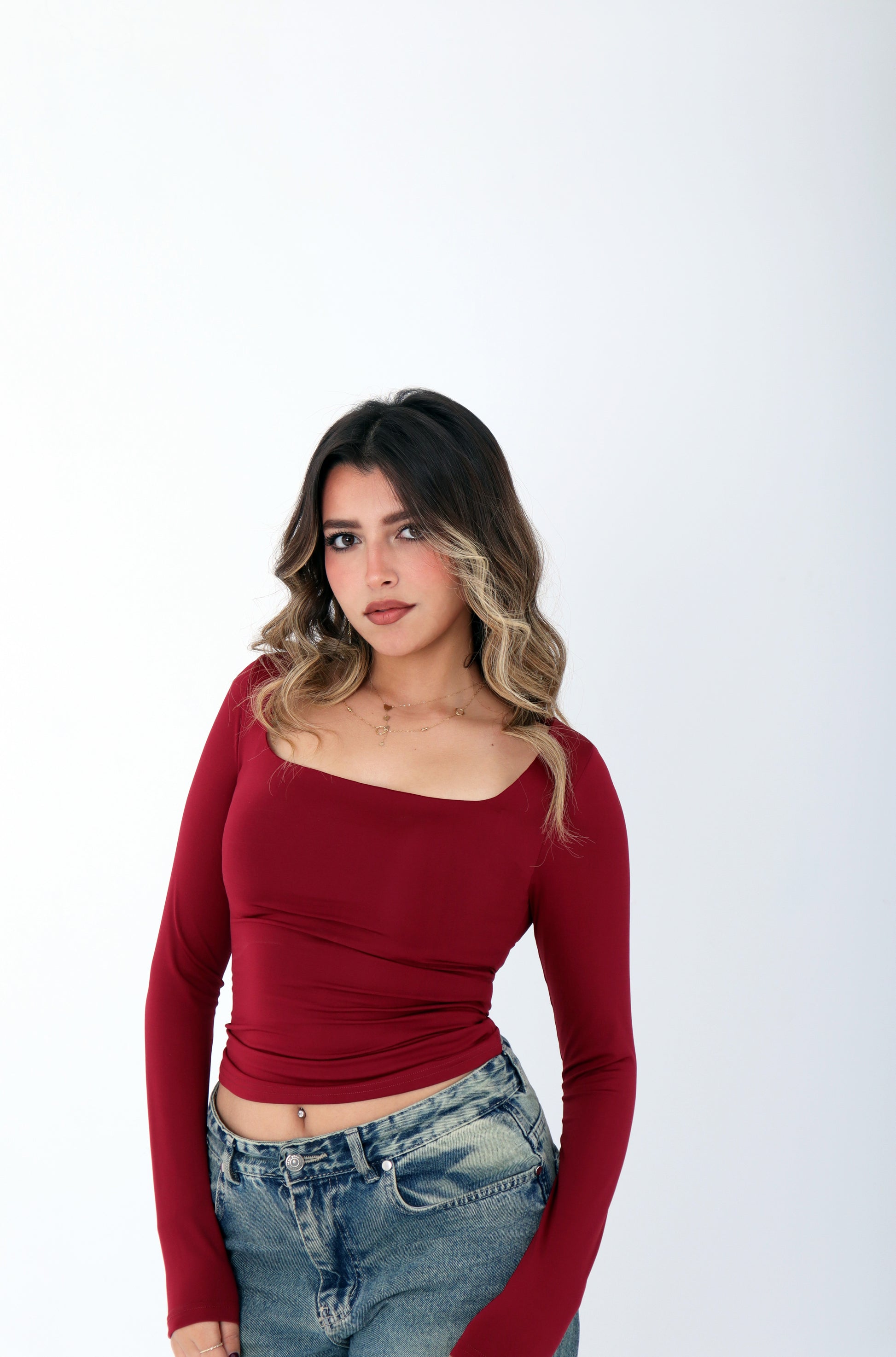 Curve Fit Top in burgundy